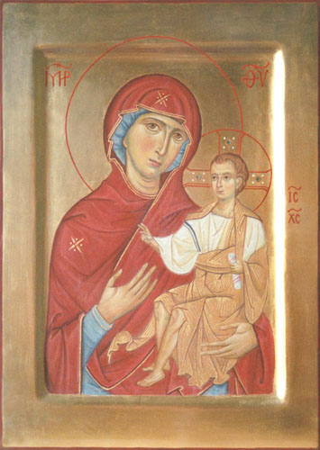 Vaječná tempera, dřevěná deska, plátkové zlato